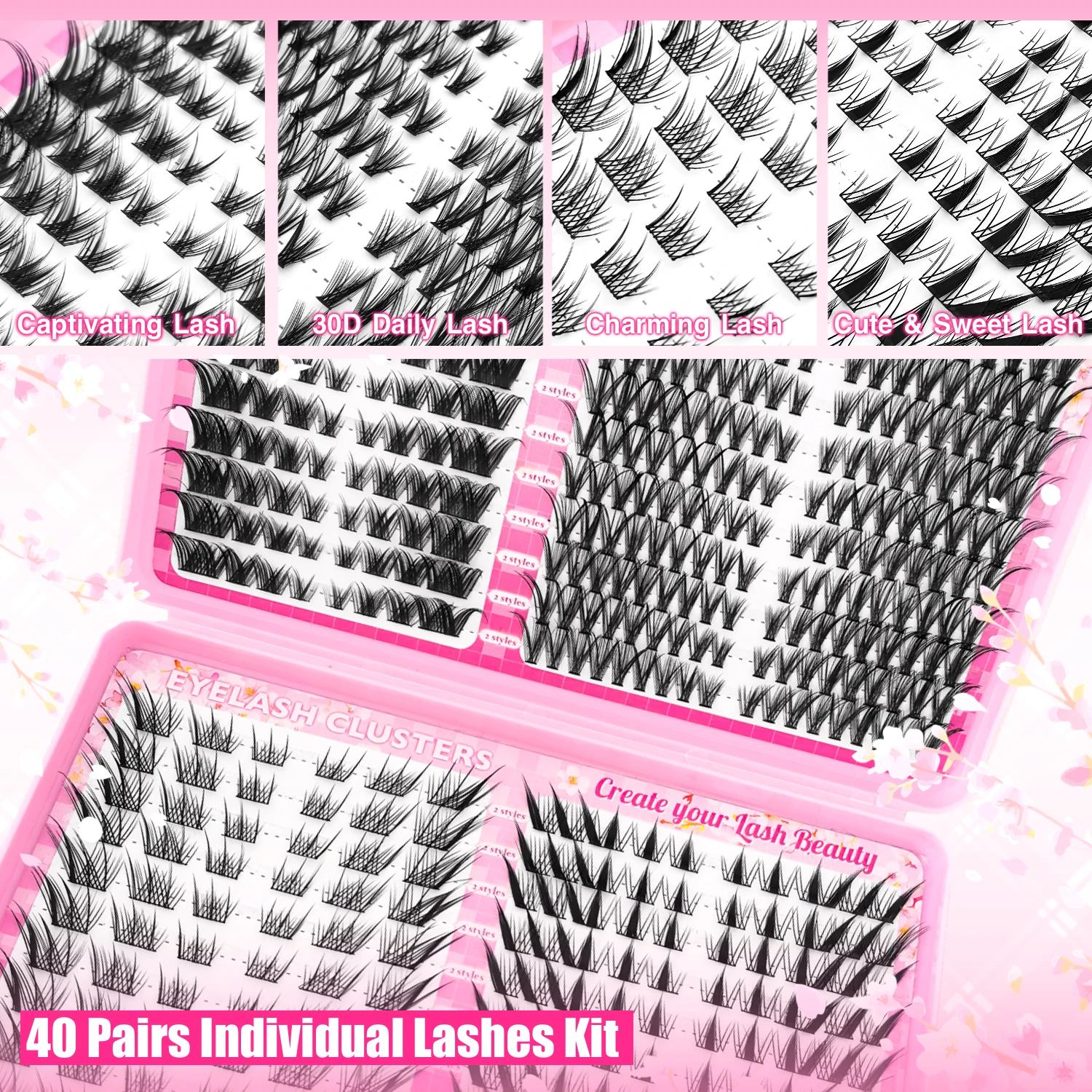 Mixed Length Individual False Eyelashes Kit, Natural Look Eyelash Extensions with Lash Applicators